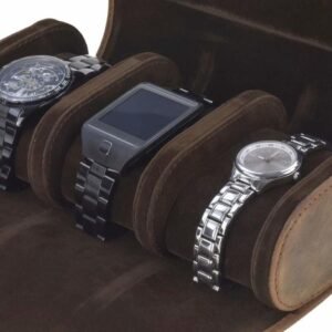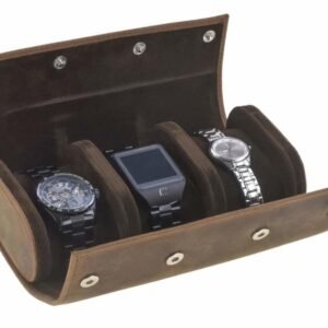 La custodia per orologi Greenburry VINTAGE in pelle offre una protezione sicura e uno stile rustico per i tuoi preziosi orologi. Realizzata in pelle bovina di alta qualitร , questa custodia รจ foderata completamente con velluto e feltro per evitare graffi. Dispone di 3 scomparti imbottiti, ciascuno di circa 5 x 9 x 5 cm, con cuscinetti fissati tramite bottoni automatici. La chiusura รจ garantita da unโabbottonatura con 3 clip, assicurando che gli orologi restino ben protetti durante il trasporto o la conservazione. Un logo impresso completa il design vintage elegante e funzionale.