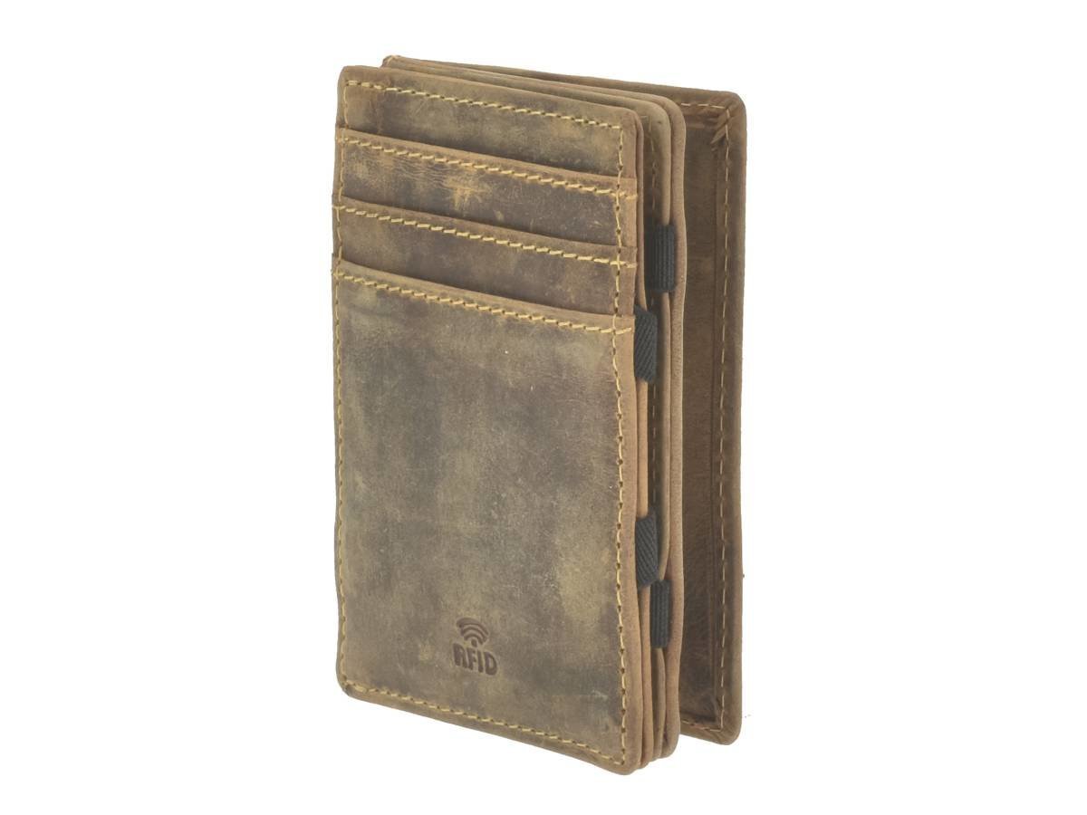 Magic Wallet in pelle “Vintage” antic brown con effetto magic, 4 scomparti carte, portamonete e protezione RFID.