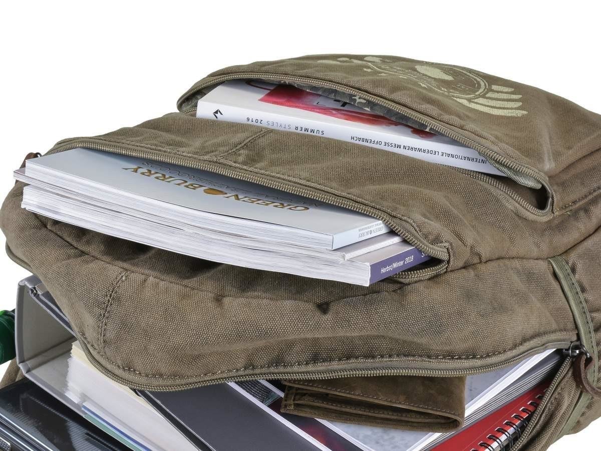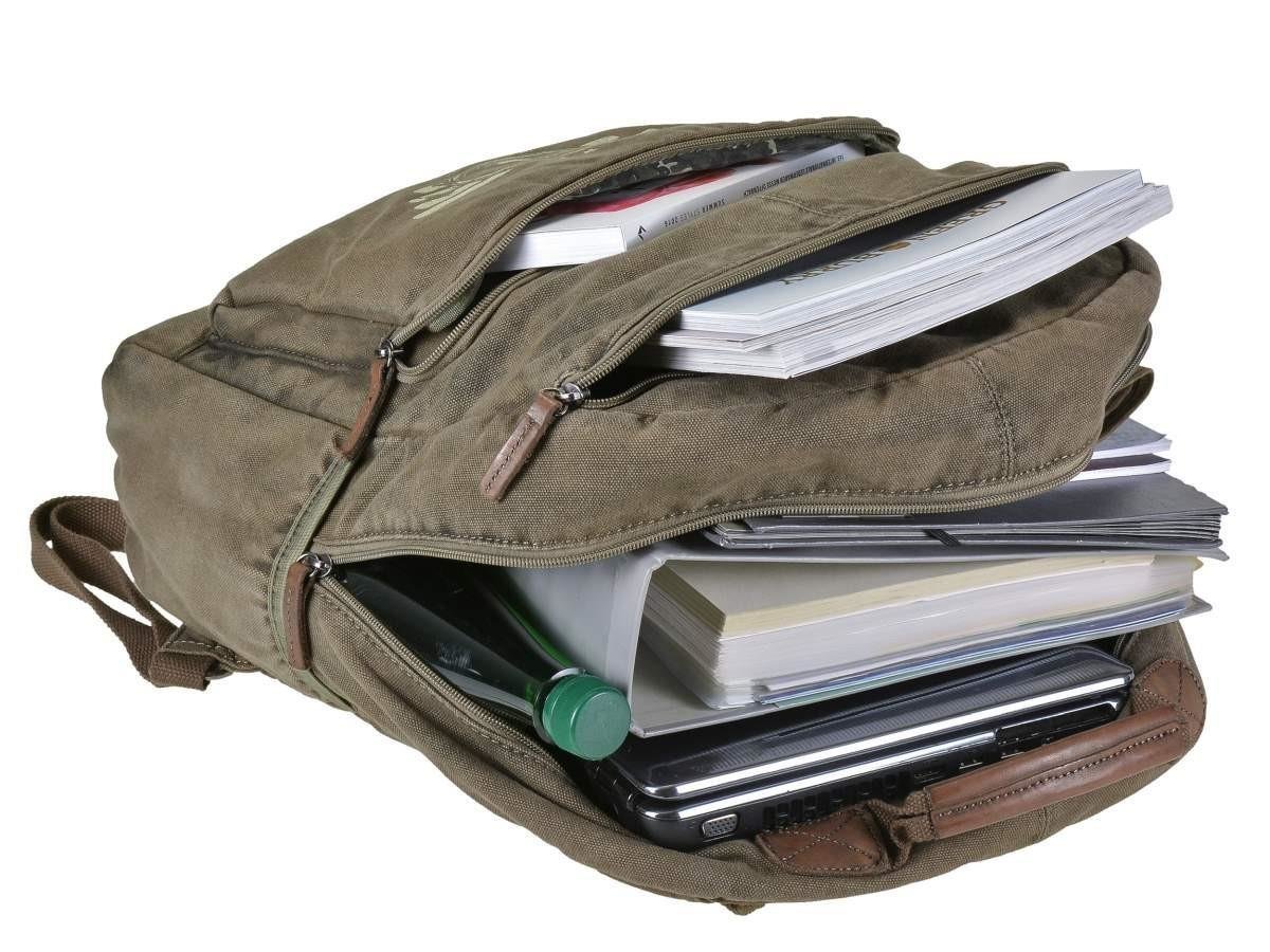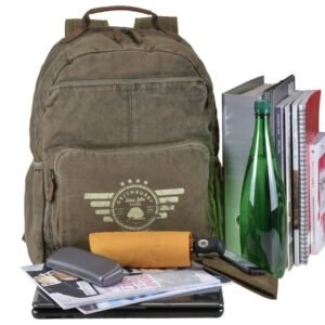 Questo zaino “Aviator” in robusto canvas lavato 16oz, abbinato a dettagli in pelle, offre un carattere unico grazie alla lavorazione manuale che ne esalta ogni dettaglio. Progettato per chi ha bisogno di trasportare comodamente un notebook fino a 32×31 cm e documenti formato A4, dispone di un ampio scomparto principale completamente foderato, con tasche interne dedicate a telefono, portamonete e altri accessori. Il design pratico include anche un tasca frontale e posteriore con zip, oltre a due tasche laterali per un accesso rapido. Lo schienale imbottito e le spalline larghe regolabili assicurano comfort anche durante lunghe giornate fuori casa. Ideale per studenti, professionisti e viaggiatori urbani che cercano stile vintage con funzionalitร moderne.