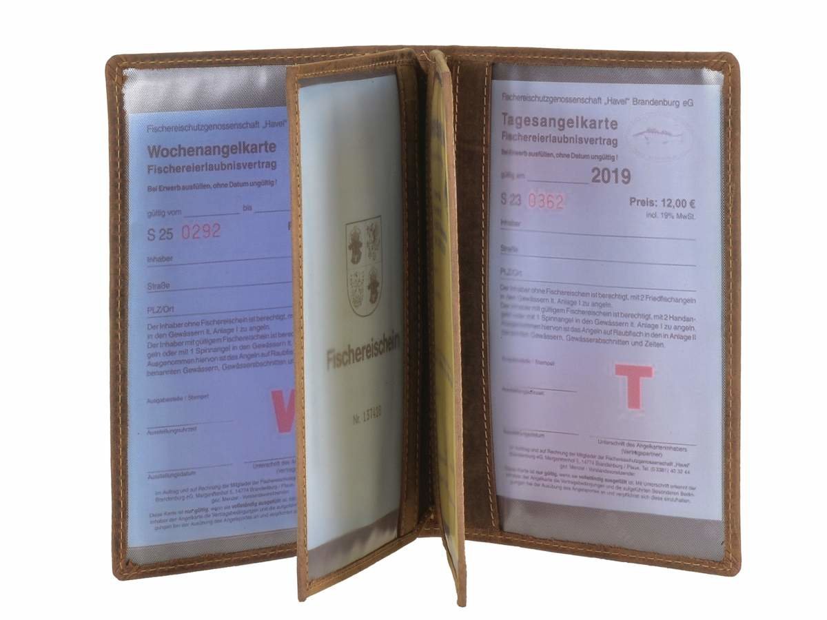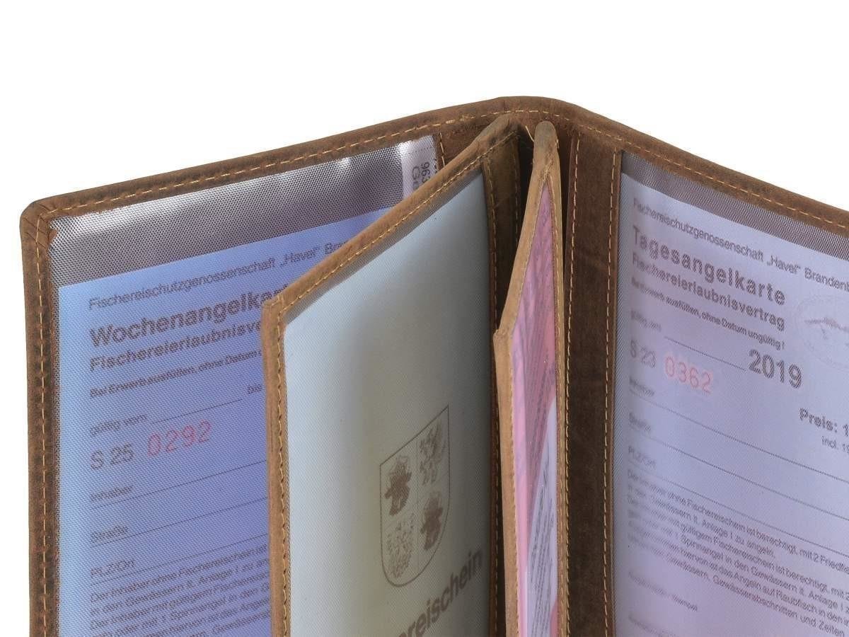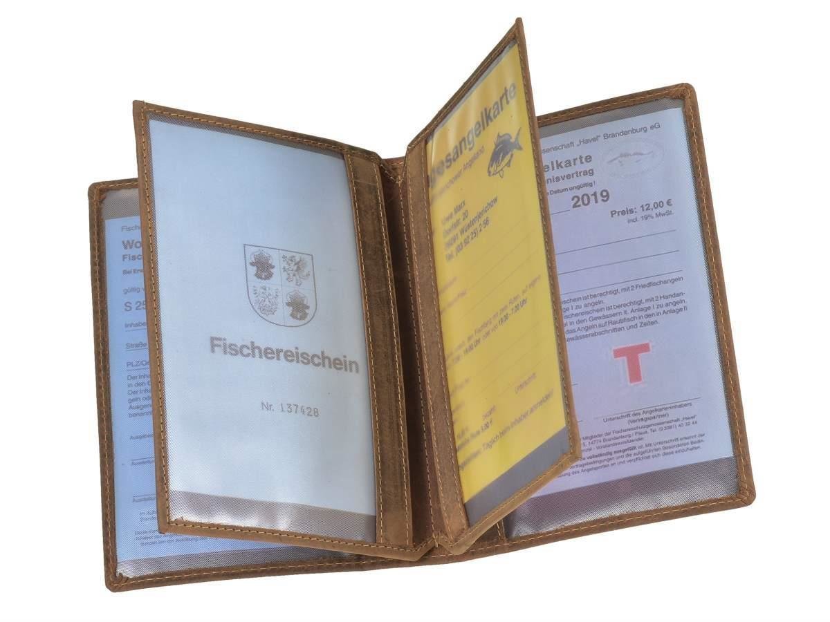 Il portadocumenti Greenburry “Hecht” รจ la scelta perfetta per chi vive la pesca con passione. Realizzato in robusta pelle di bovino con finitura “used look”, presenta unโincisione artistica raffigurante un luccio. ร dotato di sei scomparti trasparenti ideali per custodire licenze, tesserini o documenti da pesca in modo ordinato e sicuro. La pelle naturale si adatta allโuso quotidiano, garantendo comfort e durata. Un compagno essenziale per le avventure in natura, pratico e ricco di carattere.
