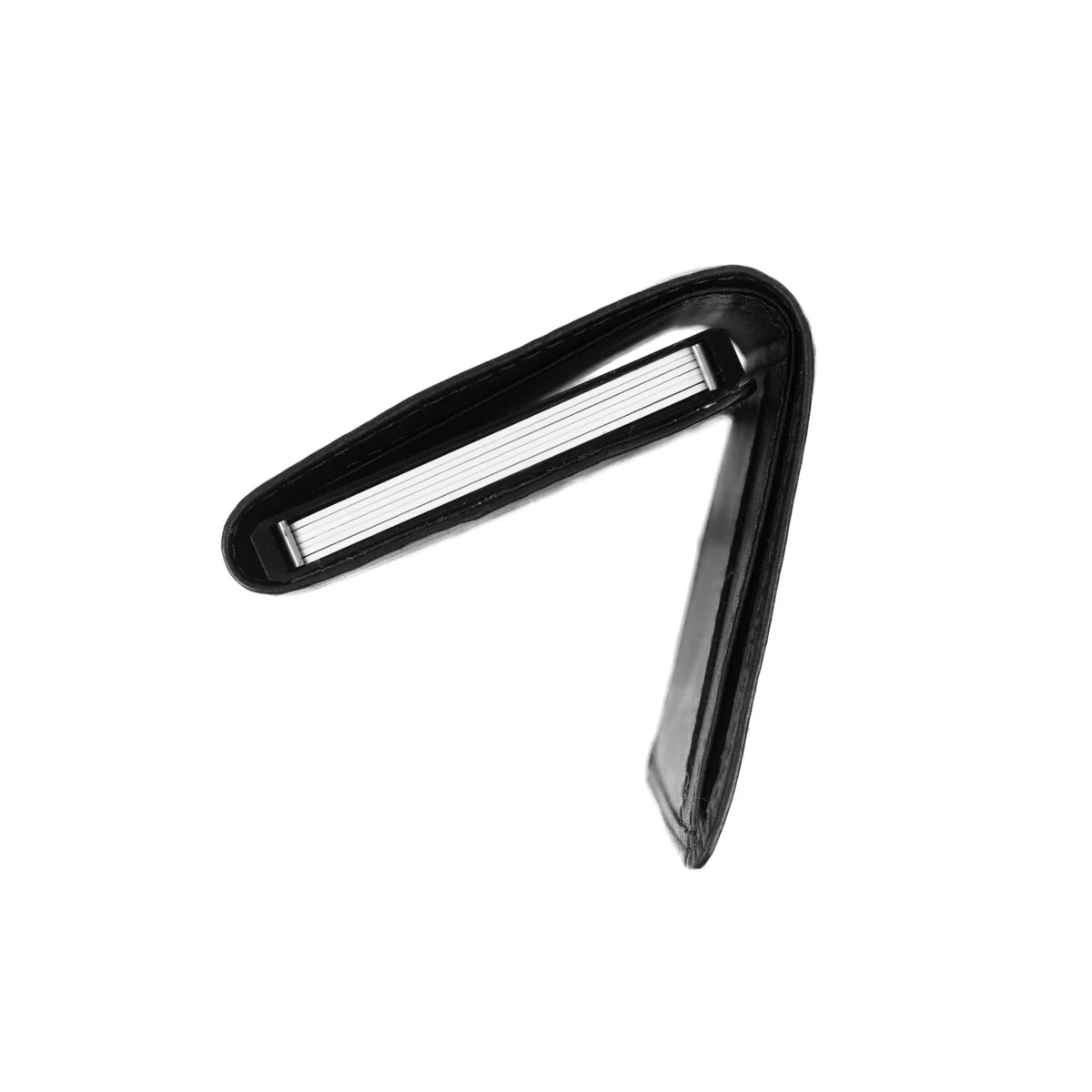 - Compartimenti: 1 scomparto principale per 6 carte piatte o 4 carte spesse, 1 tasca per banconote, 1 inserto per 1–2 carte, 1 tasca posteriore con zip