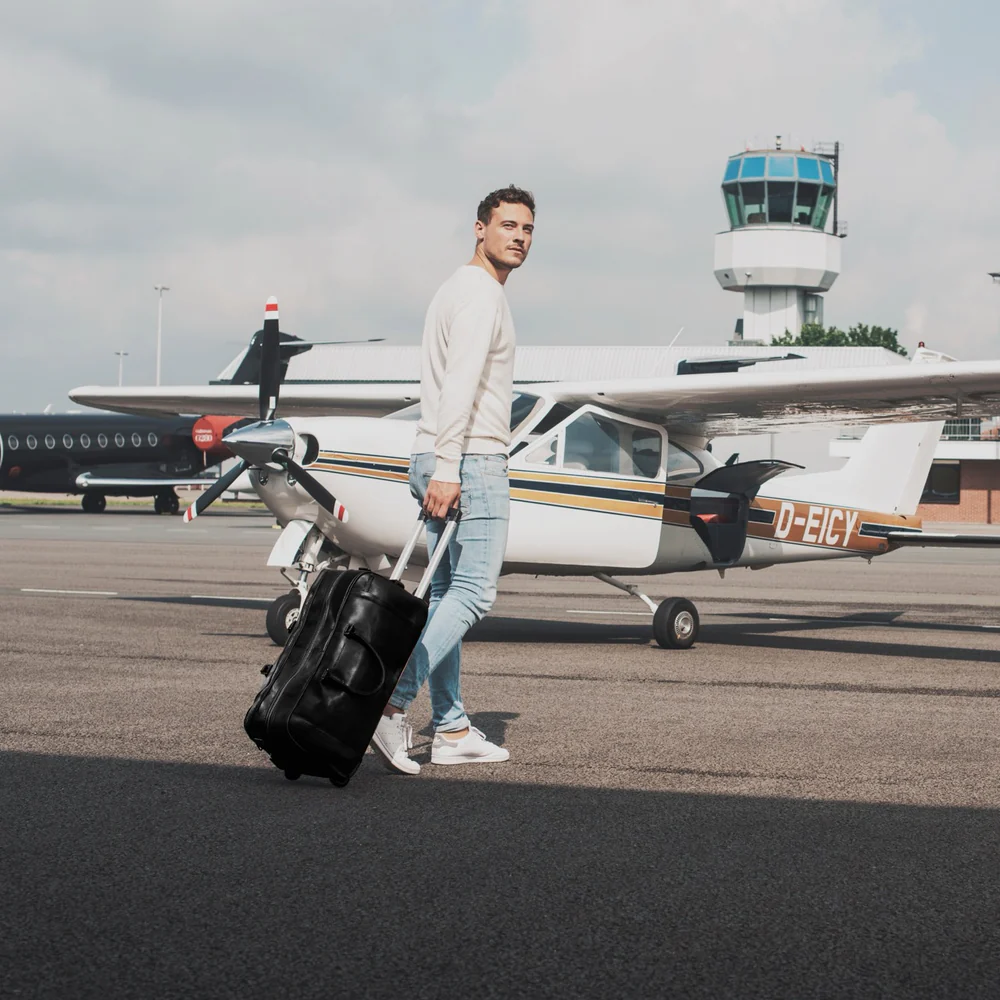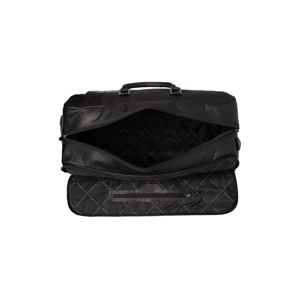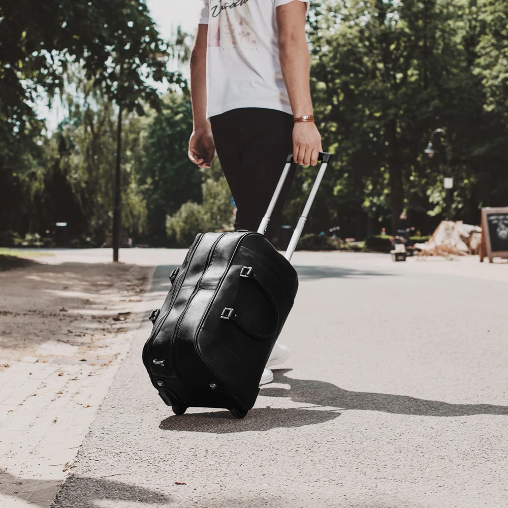 Questo trolley da viaggio in pelle risolve il problema di trasportare comodamente bagagli pesanti grazie al suo sistema robusto e ruote scorrevoli. Ideale per weekend o viaggi di lavoro, unisce praticitร  e stile con finiture di pregio e logo in rilievo, garanzia di qualitร  Chesterfield.